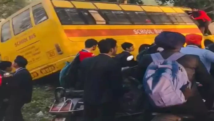 ਪਠਾਨਕੋਟ ਦੇ ਸੁਜਾਨਪੁਰ ਰੋਡ ‘ਤੇ ਸਕੂਲੀ ਬੱਚਿਆਂ ਨਾਲ ਭਰੀ ਬੱਸ ਟੋਏ ‘ਚ ਪਲਟੀ, ਚਾਲਕ ਸਮੇਤ ਸਾਰੇ ਬੱਚੇ ਸੁਰੱਖਿਅਤ